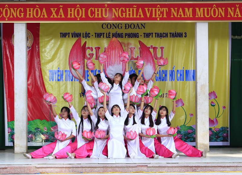 Tại buổi giao lưu, thành viên của công đoàn các trường đã đem đến những bài thư hay, bài hát cảm động và vở kịch đặc sắc chạm đến trái tim của tất cả mọi người, đó là câu chuyện kể “Chữ quan liêu viết như thế nào” của công đoàn trường THPT Thạch Thành 3, tiết mục của công đoàn trường THPT Bỉm Sơn, vở kịch “Tình yêu của Bác Hồ dành cho những khúc hát dân ca” của công đoàn THPT Vĩnh Lộc. Với các tiết mục múa được dàn dựng công phu, sáng tạo, nếu như tiết mục Tiếng hát từ thành phố mang tên Bác được phụ họa bởi các em học sinh thì các tiết mục còn lại dưới sự thể hiện tài hoa của tập thể các thầy giáo, cô giáo. Buổi giao lưu đã để lại cho những người tham dự những cảm xúc lắng đọng, được hiểu thêm về cuộc đời, phong cách của vị lãnh tụ kính yêu cảu dân tộc để từ đó mỗi người biết sống tốt đẹp hơn.
