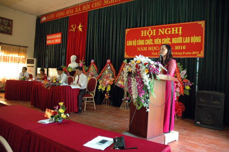 Sự thành công của Hội nghị viên chức người lao động của trường THPT Vĩnh Lộc như một luồng gió mới thổi vào tập thể sư phạm nhà trường sự phấn khởi và tin tưởng vào một năm học mới thành công trên mọi phương diện.