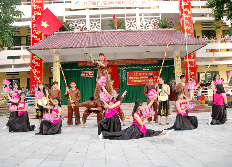 Phần diễn ra sôi động thu hút sự quan tâm của đông đảo tập thể cán bộ giáo viên và học sinh là chung kết văn nghệ của 09 tiết mục từ 09 lớp. Nhìn chung tất cả các tiết mục vào vòng chung kết đều được các em học sinh quan tâm đầu tư kỹ lưỡng. Nhiều tiết mục được dàn dựng công phu, sáng tạo và đầu tư như các lớp 12A1, 11A1… chứng tỏ các em học sinh không chỉ quan tâm trong học tập mà còn thể hiện tài năng và xuất sắc trong kỹ năng tổ chức các hoạt động ngoại khóa, có thể động viên được cả tập thể lớp và giáo viên chủ nhiệm tham gia…