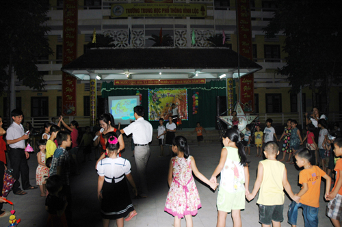 Đêm hội có sự tham dự của cô giáo Nguyễn Thị Hà – Bí thư chi bộ- Hiệu trưởng nhà trường cùng toàn thể các thầy giáo, cô giáo, các anh chị là dâu- rể và gần 90 cháu trong độ tuổi thiếu niên, nhi đồng là con của cán bộ giáo viên trong trường.