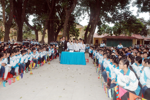 Về tham dự buổi ngoại khóa có toàn thể Ban giám hiệu cùng tập thể các thầy giáo cô giáo và các em học sinh của ba khối.